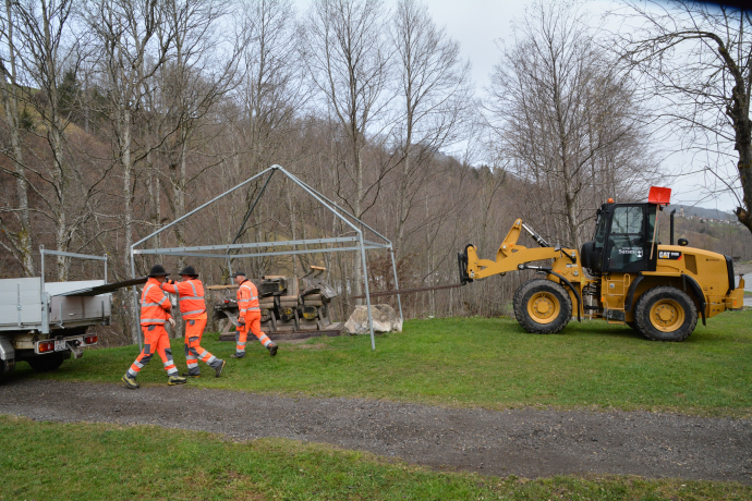 Die Arbeiter unterhalten auch Strassen, Plätze, Grünanlagen und Gemeindeliegenschaften. Sie sorgen dafür, dass die Dörfer schön geschmückt sind, im Sommer mit Blumen, im Winter mit Weihnachtsdekoration. Sie stellen Infrastrukturen auf, wenn im Tal ein Event stattfindet. Und sie kümmern sich auch um Erd- und Urnenbestattungen. Und nicht zuletzt sind sie für die Wasserversorgung und die Abfallbewirtschaftung verantwortlich und für vieles anderes mehr. Das Meiste davon scheint uns wie selbstverständlich zu funktionieren, doch wir würden ziemlich schnell im Chaos versinken, wenn die Männer in Orange nicht da wären.