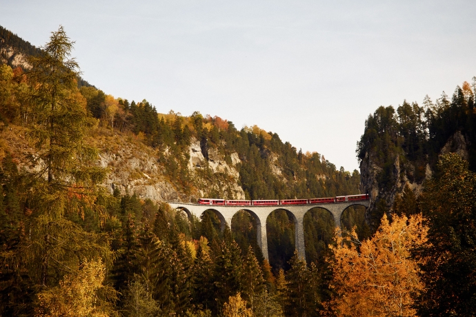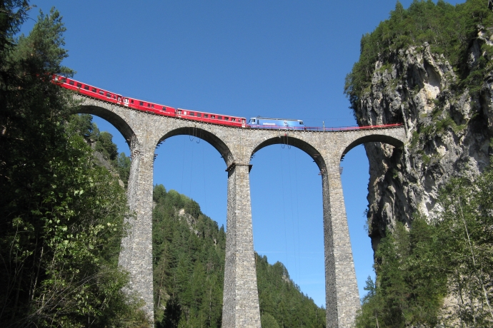 The Landwasser Viaduct is the largest and most spectacular bridge structure on the RhB and has been a UNESCO World Heritage Site since 2008. The bridge not far from Filisur is the end point of the railway adventure trail.